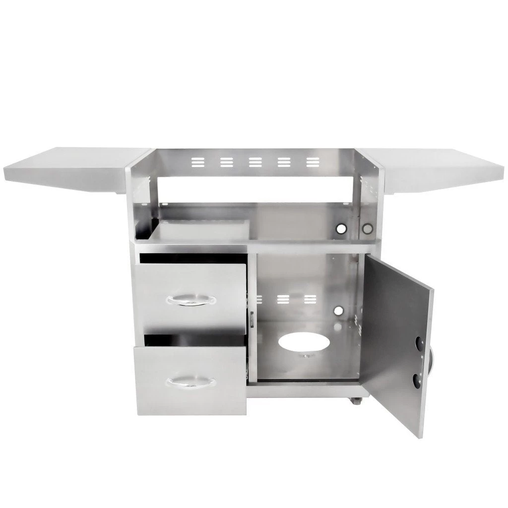 This Blaze stainless steel grill cart is specifically designed to house the Blaze 40-Inch 5 burner gas grill. The two stainless steel side shelves keep your BBQ tools at hand and provide a convenient work area while you cook. The Blaze grill cart also features two front doors with rounded handles to access the cabinet below the grill where you can store your propane tank, grill cover and BBQ accessories. Lifetime warranty to the original owner against defects in manufacturing and workmanship. This warranty extends to the original purchaser against manufacture defects for products purchased for ordinary single-family home use.