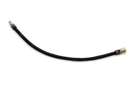 30″ (Black) Whisper Flex Line, stainless steel, for use indoors/outdoors, staggered pitch every 2 inches to eliminate the nuisance of whistling found during normal installs; un-bagged, 1/2″ OD – 3/8″ ID, 1/2″ female pipe threads on one end and 3/8″ male pipe threads on the other.