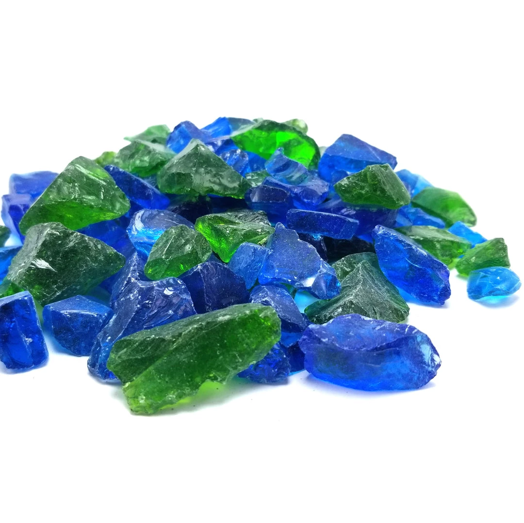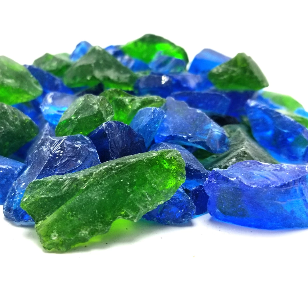 ONE STOP OUTDOOR 10lbs “Fire Water Blend” Blue & Green 1/2″ – 3/4″ – Tempered Fire Glass