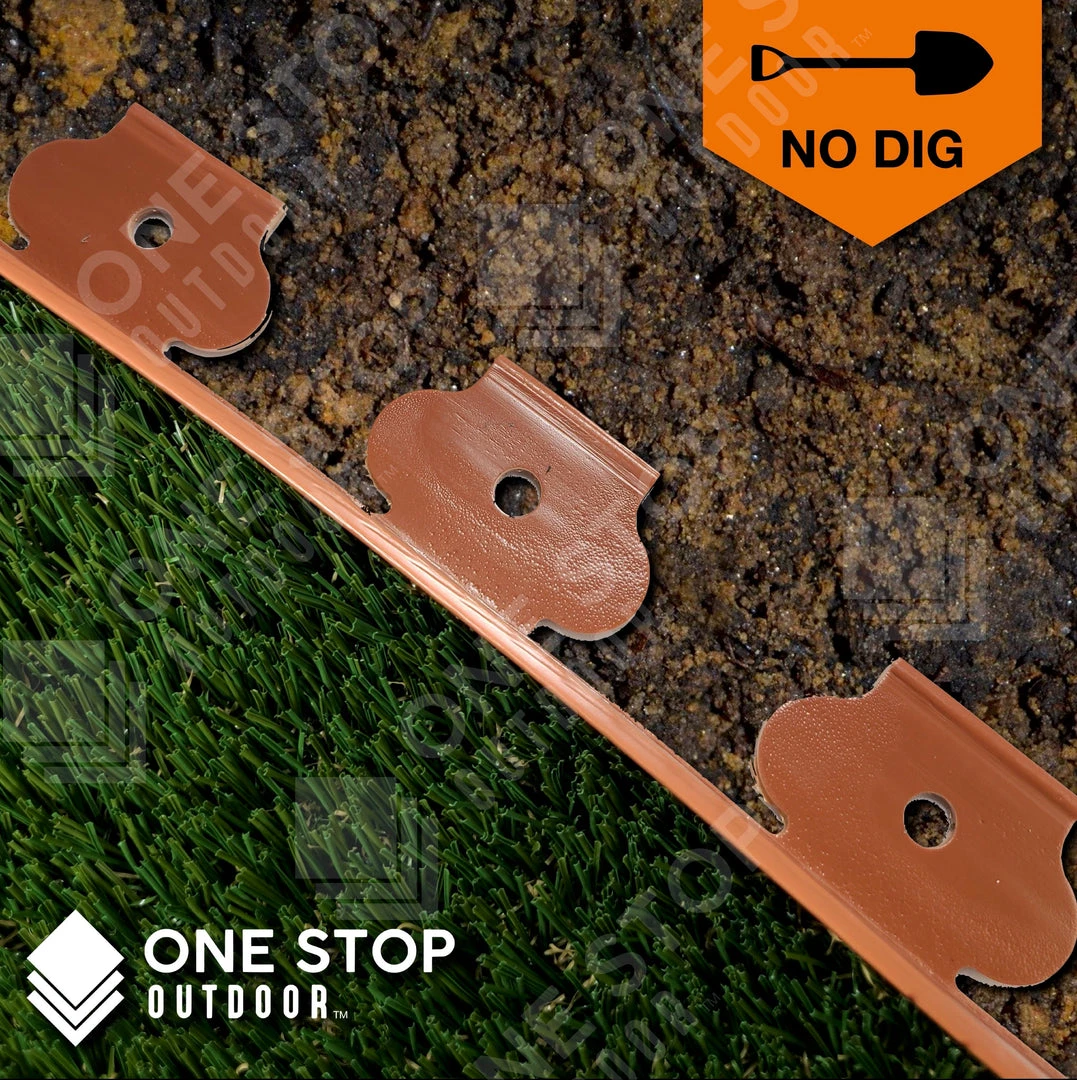 One Stop Outdoor Instant Edging – Brown 20ft Premium No Dig Yard Edging Kit, for Landscaping, and Flower Gardens – (2″ High) – Includes 18 Edging Stakes (Black)