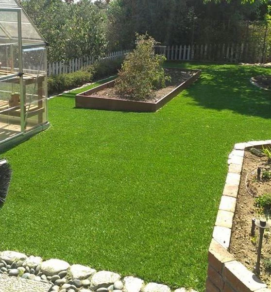 Our Pro-Blade Premium Import Artificial Turf is a heavyweight 42 oz. face weight grass that has a 1-3/4 in. pile height. This is the perfect solution to give your backyard, patio or garden area a beautiful green grass look year round. Not only does it give the look of “fresh cut grass”, it is functional in all types of weather. The Pro-Blade requires no maintenance, no need to mow, water or provide chemical treatments other than the occasional spray down with water. Regular hosing and some treatments may be required for customers with pets that use the turf for potty purposes.