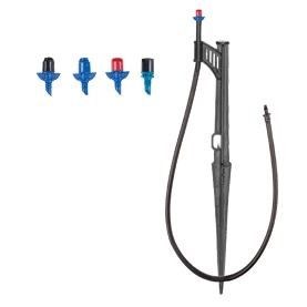 DIG’s Micro Sprayers are low flow with full, half, and quarter circle or strip pattern with flow rate of 13.4 gallons per hour at 25 PSI. The 110B, 111B, and 112B have a threaded barb are available om packs of 10, the 110-1B, 111-1B, 112-1B, 113-B are in single packs and assembled with 13” stake, 24” micro tubing with 1/4″ barb for installation flexibility. Producing a fine spray in a range of patterns, the micro sprayers can cover areas from 5.9’ radius to 19.8’ in full diameter, depending on spray pattern. The low precipitation rate micro sprayer can be used for most planting areas and are suggested when low flow overhead irrigation is desired or for an area where drip emitters or conventional sprinkler systems are not practical. These micro sprayers are assembled of two nonmoving parts and have no flow adjustment capability.