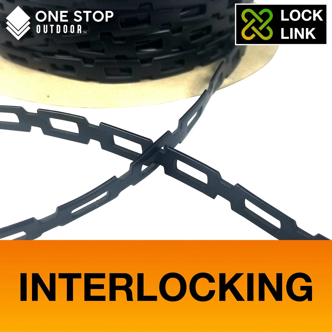 One Stop Outdoor Lock Link – (100′ Feet 1/2″ Wide) Strong Flexible Plastic Chain Locking Strap – Cable, Plant & Tree Ties for Staking – Premium Reusable Tree Support Straps